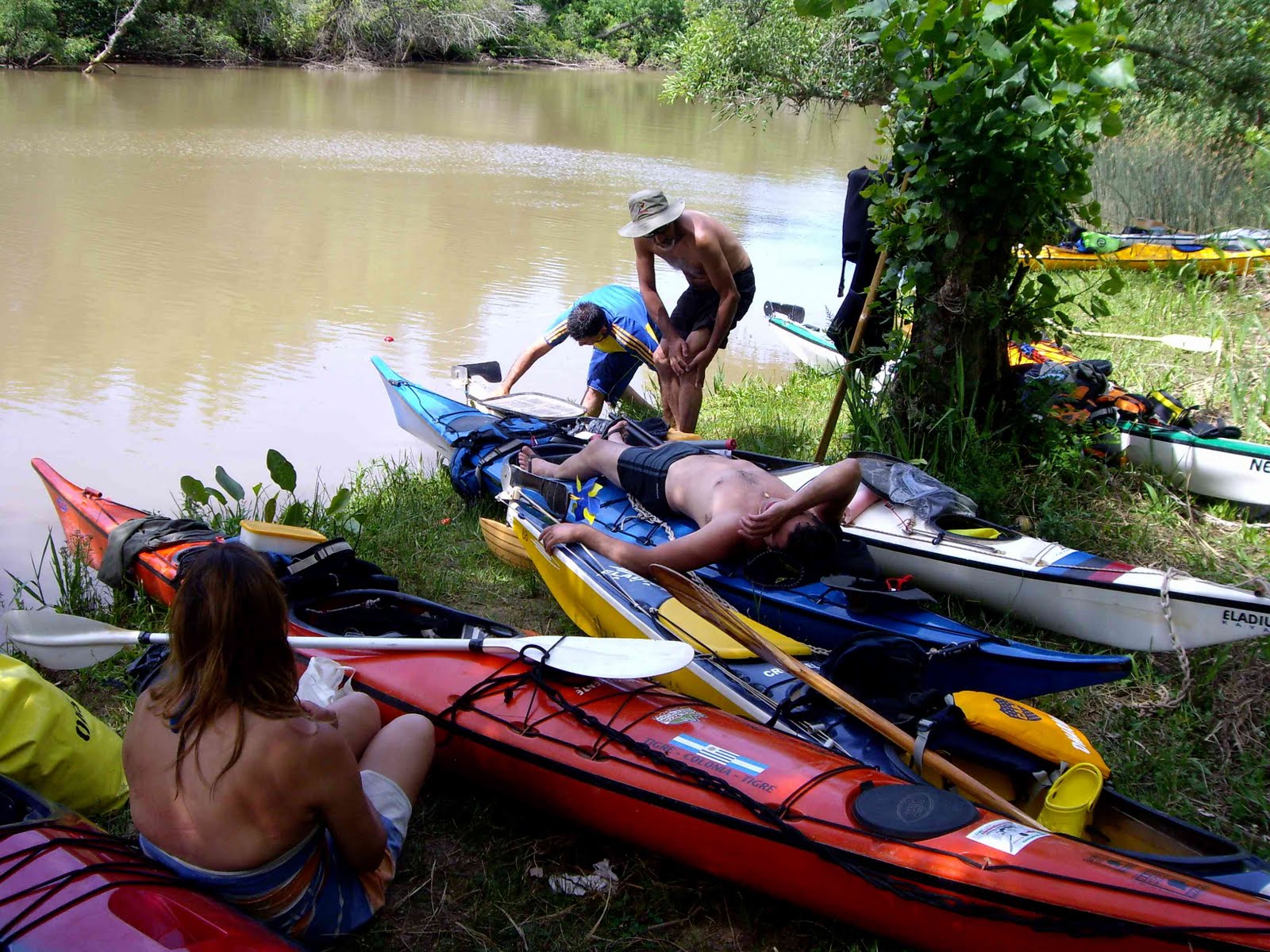 Nos encontramos con Lucas tipo 9:30 hs. en la YPF del delta, luego de tomar un rico cafe, nos fuimos para el club donde Lucas guarda su kayak, el Nahuel. Cuando estabamos cargando los botes con mi hermano se acerca Lucas con una bornca barbara informandonos que de la guarderia le habia robado el asiento de su kayak, tratamos de buscar el asiento por el galpon pero no tuvimos suerte, luego de intentar colocar un asietno de un kayak doble que el tambien tiene, vimos que no se ajustaba bien, tuve que prestarle una colchoneta de espuma que uso para que los kayak se mi hermano y mio no se rocen en el viaje, la coloco y por suerte se sintio comodo y pudimos emprender el viaje hacia el Pehuen, lugar donde almorzariamos.